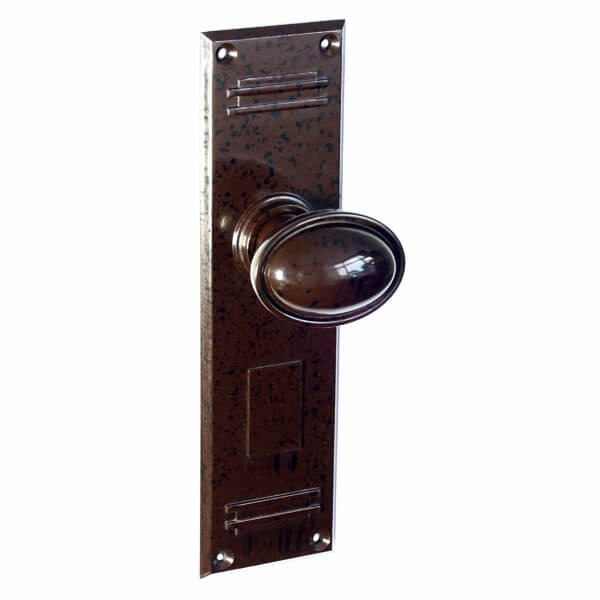 Bakelite Stepped Oval Door Knobs on Square Rose Walnut