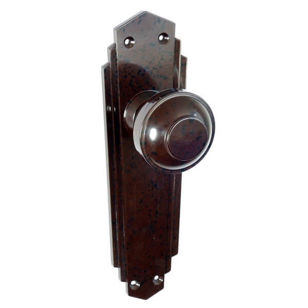 Bakelite Round Door Knobs on Deco Latchplates Walnut