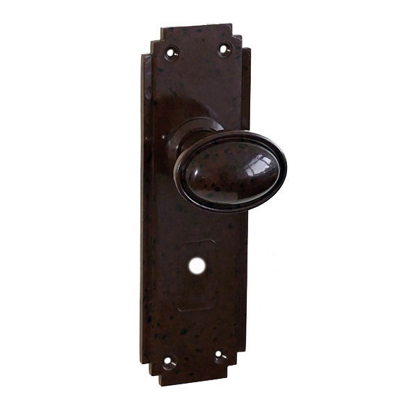 Bakelite Stepped Oval Door Knobs on Deco Bathroom Plates Walnut