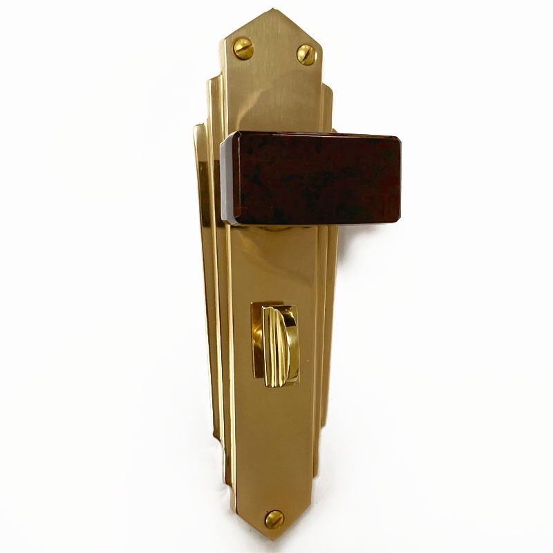 Bakelite Tee Door Knobs Walnut on Brass Empire Bathroom Plates