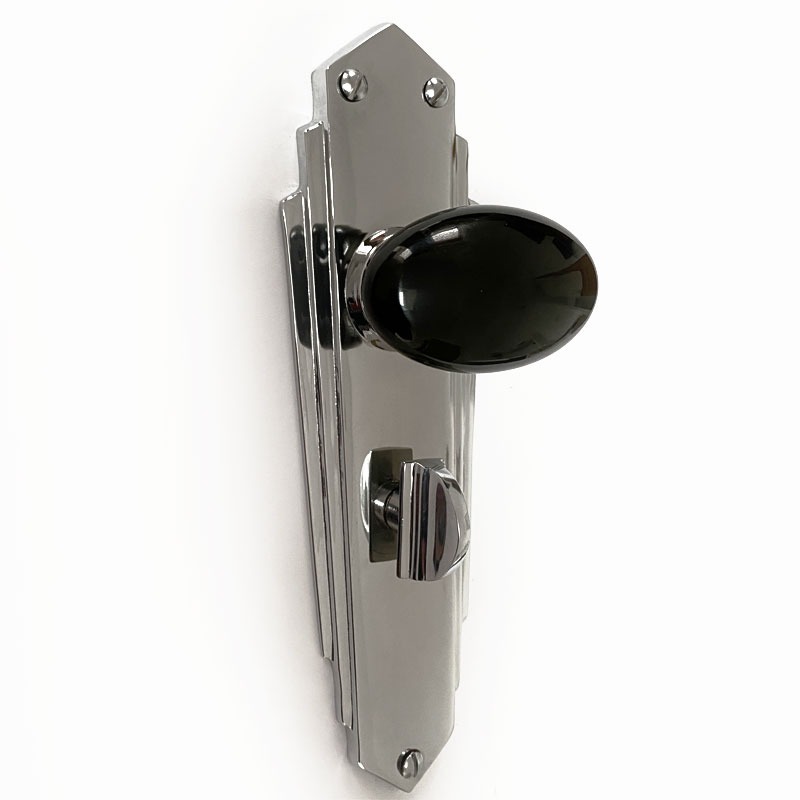 Bakelite Smooth Oval Door Knobs Black on Empire Bathroom Plates Chrome