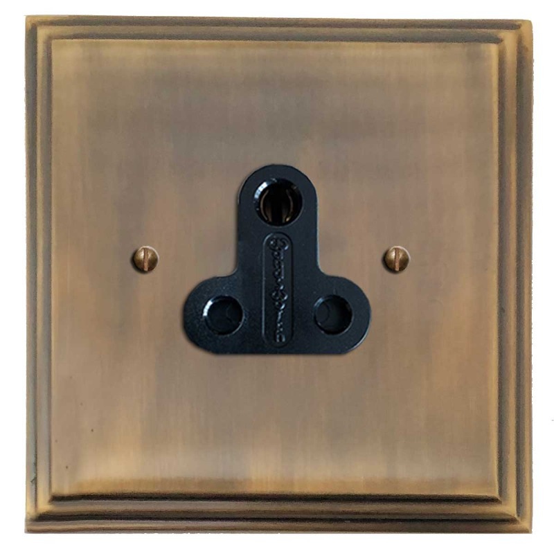 Edwardian Lighting Socket Round Pin 5A Antique Brass Lacquered