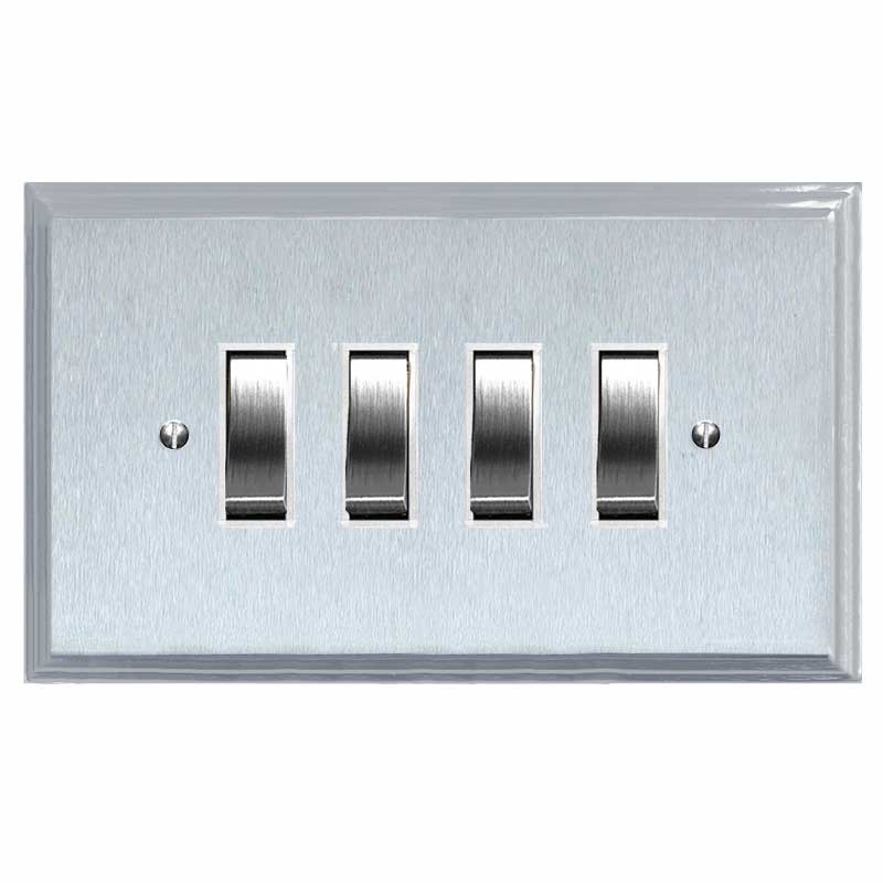 Edwardian Rocker Light Switch 4 Gang Satin Chrome & White Trim