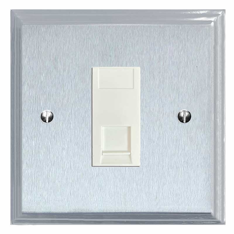 Edwardian Telephone Socket Secondary Satin Chrome & White Trim