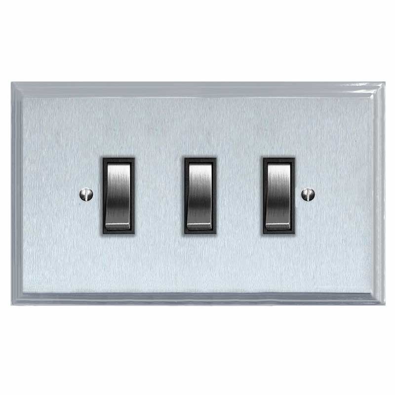 Edwardian Rocker Light Switch 3 Gang Satin Chrome & Black Trim