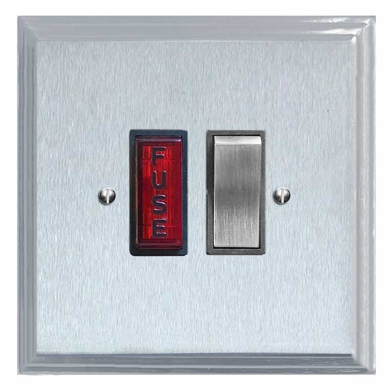 Edwardian Switched Fused Spur Illuminated Satin Chrome & Black Trim