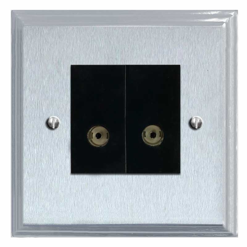 Edwardian TV Socket Outlet 2 Gang Satin Chrome & Black Trim