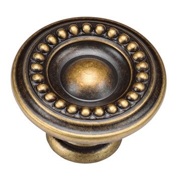 Heritage Beaded Cabinet Knob TK4404 Distressed Brass